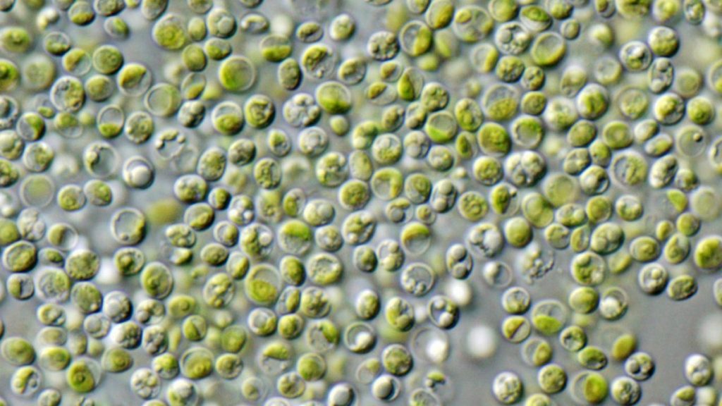 Samtidigt som de frigör syre växer algerna och bildar bland annat fett, kolhydrater och proteiner från kol, väte, kväve, fosfor och svavel.
